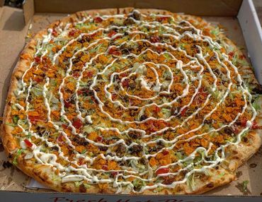 14" (M) $22.50 |16" (L) $24.50 |18" (XL) $28.50 Seasoned ground beef, Mexican blend cheese, lettuce and tomato topped with sour cream and Doritos. Served with a side of salsa